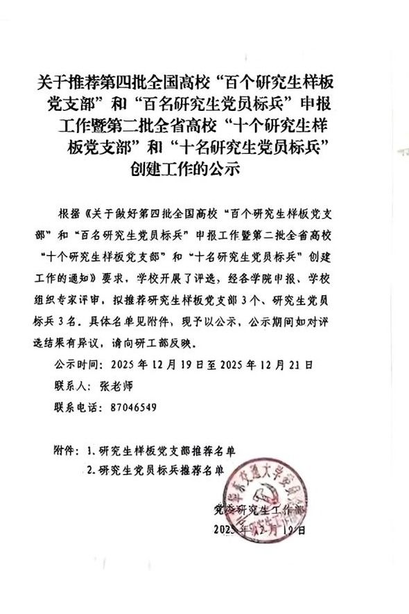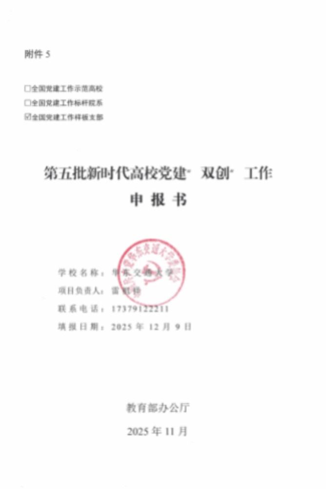 跨学科协作机制全面成型,“交通+”交叉学科优势凸显,超半数科研项目为跨支部、跨教研室联合申报。获批省级基础设施智慧建造及运行保障现代产业学院,4个国家级、2个省级一流本科专业建设点有序推进。岩土道路工程教工党支部进入全国党建工作样板支部省级推报阶段,市政环境工程研究生党支部被学校推报到省里参加“百个研究生样板党支部”评选。