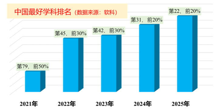 我校土木工程学科由2024年的第31位跃升至第22位,稳居全国前20%排名区间首位。近年来,我校土木工程学科软科全国排名已实现连续5年上涨,由2021年第79位、2022年第45位、2023年第42位、2024年第31位上升至今年第22位。