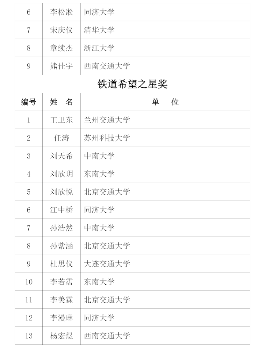 “茅以升科学技术奖”是经国家科技奖励办公室批准设立的全国性社会力量奖项,下设多个专业领域子奖项。其中,“铁道希望之星奖”专门面向有志于投身铁路及工程科技事业的优秀青年学子,旨在激励他们勇担时代使命、攀登科学高峰。