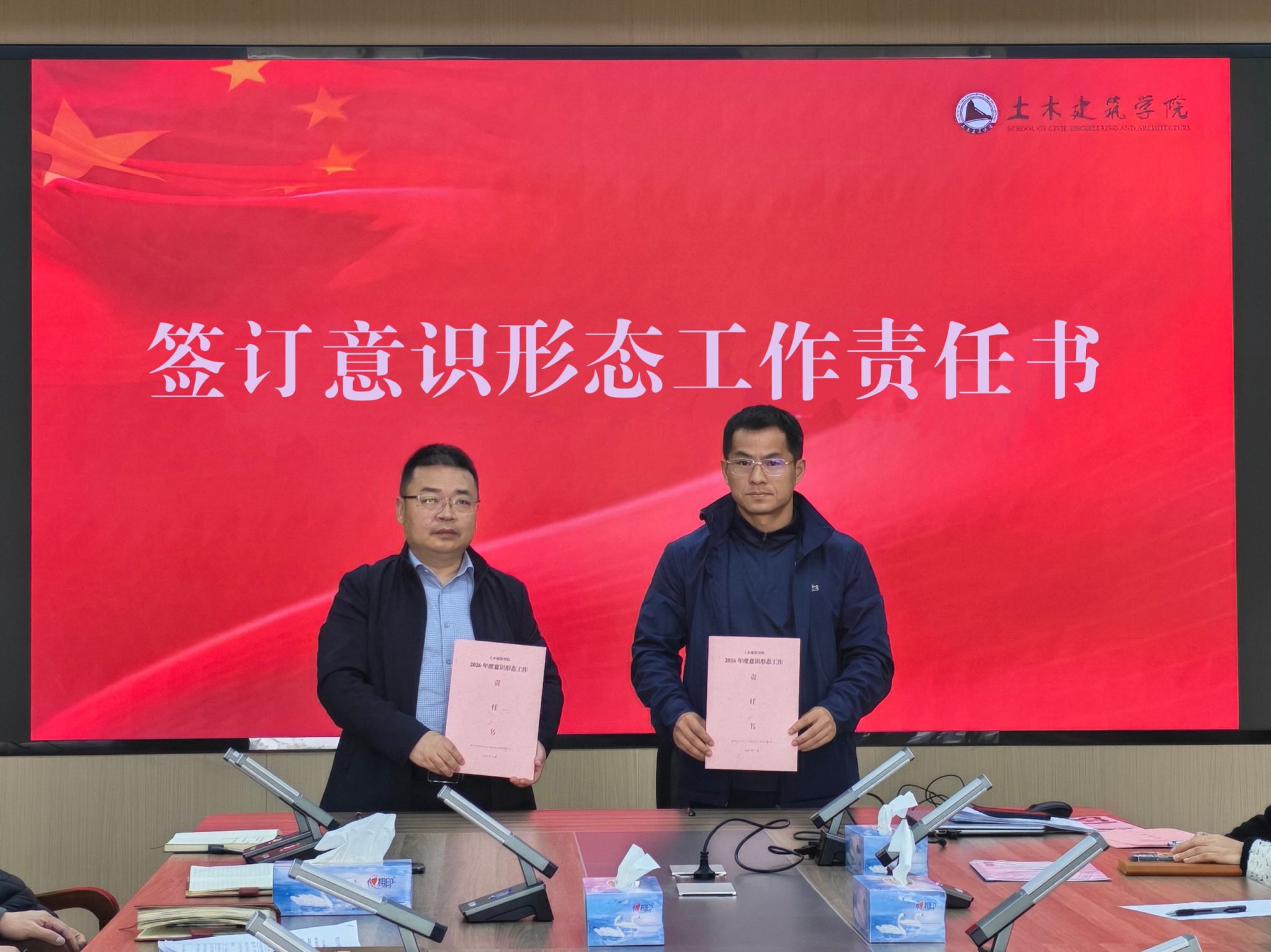 会议最后,庄海洋与院领导班子成员、各党支部书记及系部主任分别签订了2026年度全面从严治党责任书和2026年度意识形态工作责任书。