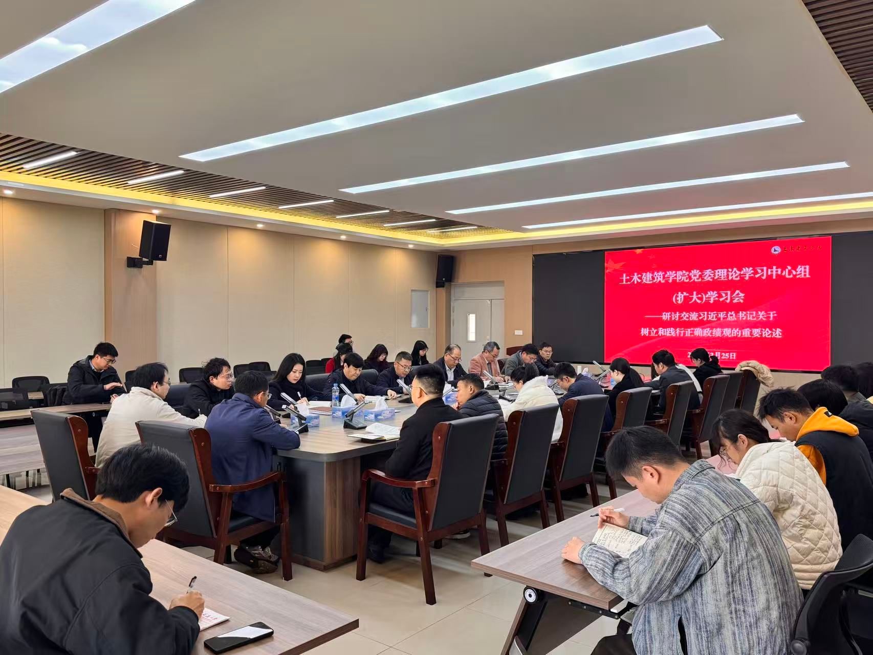 3月25日上午,土木建筑学院召开理论学习中心组(扩大)学习会,集中学习习近平总书记关于树立和践行正确政绩观的重要论述,并聚焦主题进行交流研讨。院党委负责人、院长庄海洋主持会议并领学,院党委委员、院班子成员、各党支部书记、各系部主任、全体专兼职辅导员参加会议。