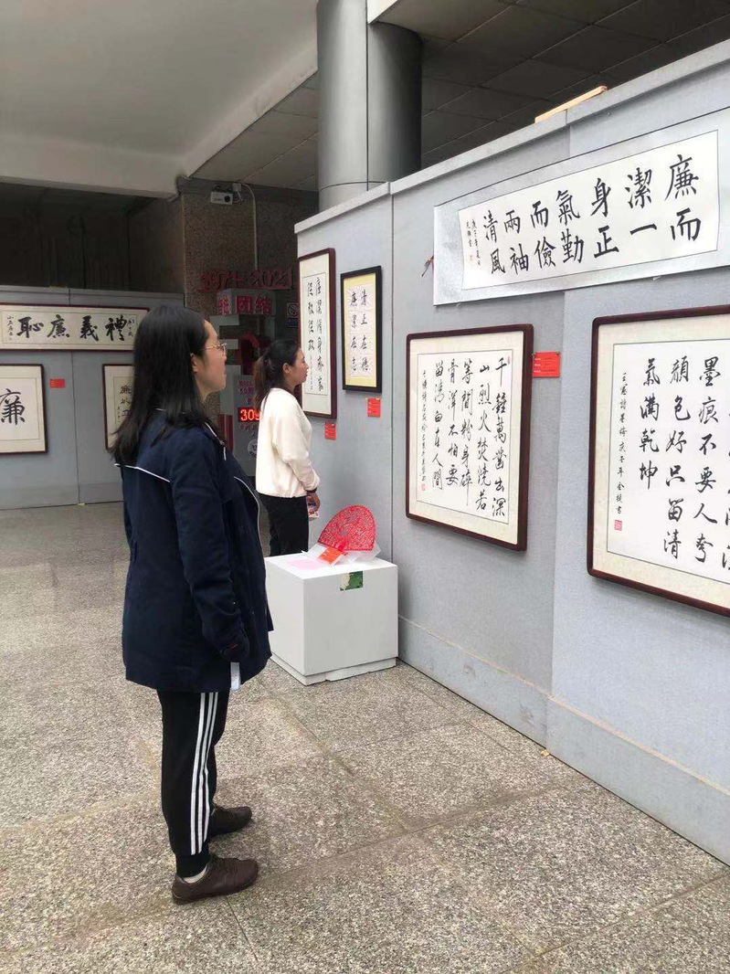 据了解,共有56幅优秀作品入选本次廉政文化作品展,都是各个学院老师同学所做并且获得了奖项。风格多样,精彩纷呈,有抒发心志的书法绘画作品,也有反映当下社会风貌的摄影作品。文化展上,大家认真观看,细细体会格言警句,还一起交流心得,感受深厚的文化底蕴,还不时驻足观赏,既受到了艺术的熏陶,又接受了一次深刻的反腐倡廉宣传教育。