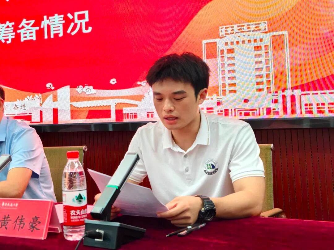 黄伟豪就本届校运会整体筹备情况作系统介绍。他回顾了学院历届赛事的优异成绩,并就组织架构、队伍报名、训练安排和后勤保障等方面作了详细说明。