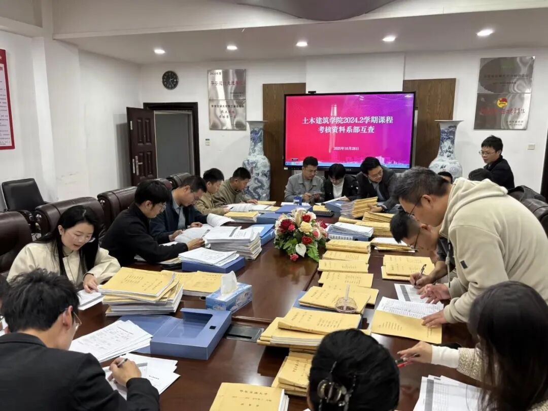 为促进教学运行更加规范,我院于教九栋土建楼302会议室组织进行了本科课程考核资料的跨系互查。此次检查致力于系统检验课程考核各个环节的规范执行与实际质量,从而促进学院教学管理效能的整体提升。各系部积极响应,选派教师代表全程参与。