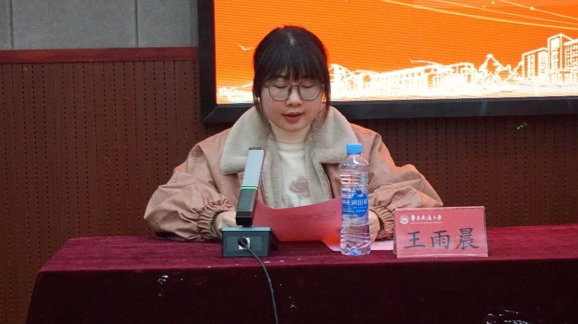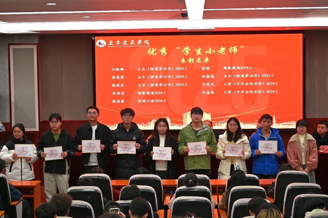 兼职组织员王雨晨宣读《土木建筑学院关于表彰 2025年度优秀“学生小老师”的决定》。