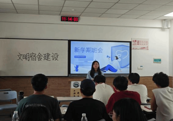 宿舍文明建设月期间,学院组织各班级同步召开文明寝室主题班会。班会由各班辅导员主讲,围绕寝室文明重要性、宿舍安全隐患排查、室友相处之道、优良学风营造路径以及学院管理要求等议题展开深入讲解与交流讨论。